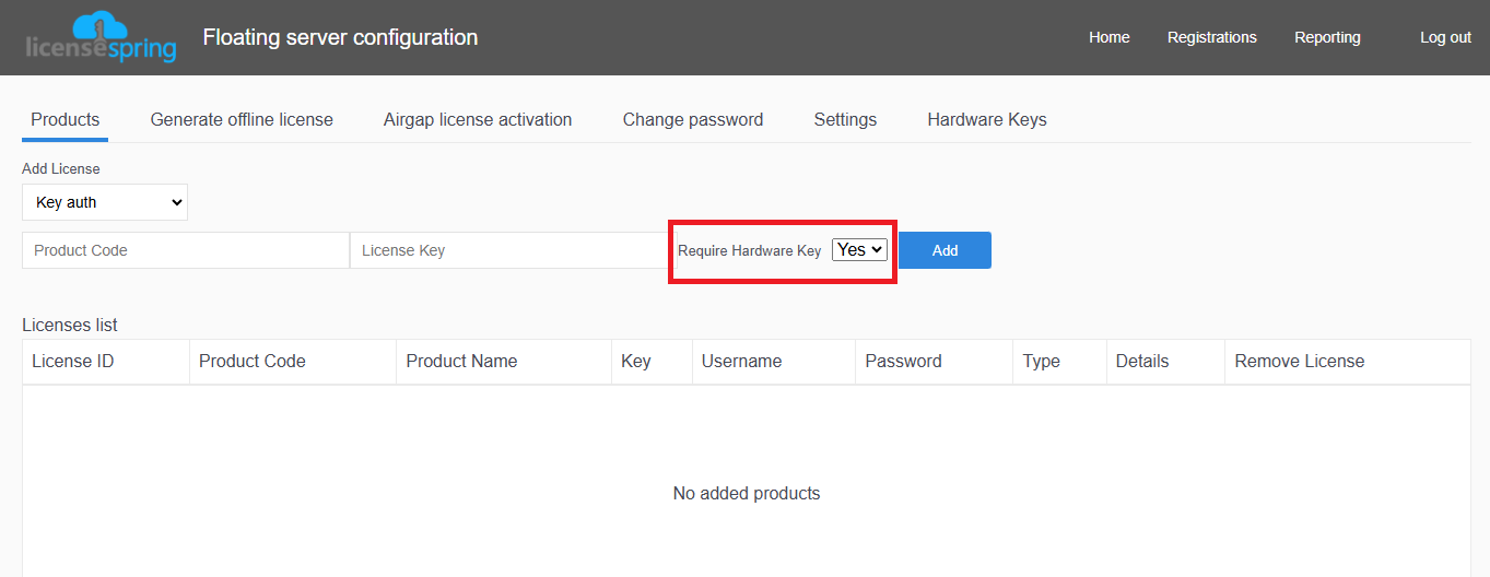 Default Behavior: When a hardware key is missing or invalid, the server returns an error.
