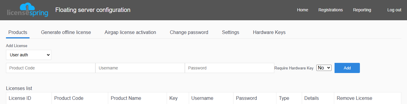 You need to provide the product code along with the required credentials. Once the license is successfully added, it will appear in the licenses list, along with its unique license ID.