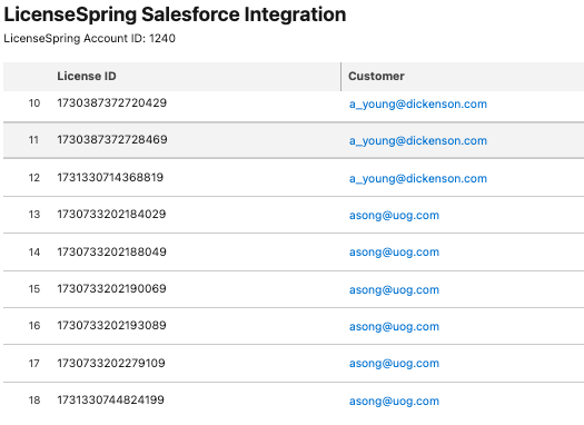 On our accounts objects the integration window will show all the the licenses that are connected to any contacts that are associated with the account that we opened up.