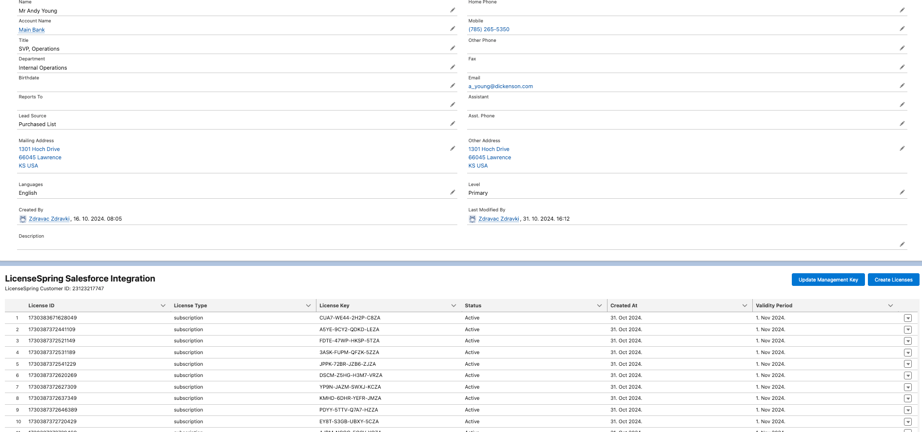Customer data in LicenseSpring will be overwritten with data from the Salesforce contact