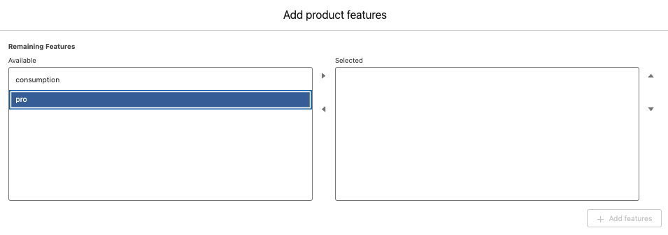 Once you're done you need to click on the "Add features" button, and this will add the product feature to the respective license