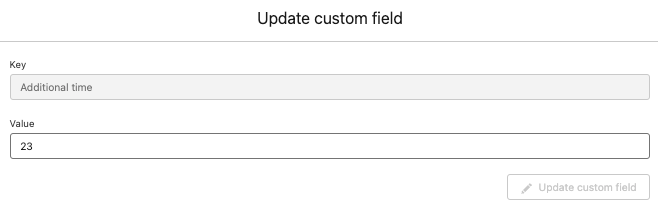This will open up an another pup up window on which once you're happy with your edit, you can click on the "Update custom field" button to save the changes