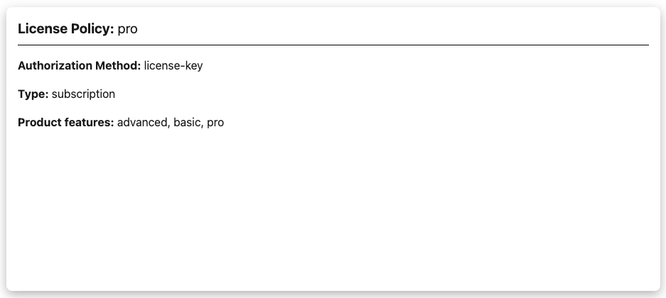 Once we have selected a LicensePolicy (in this case a subscription LicensePolicy) on the left side of the app we can see additonal information about that LicensePolicy.