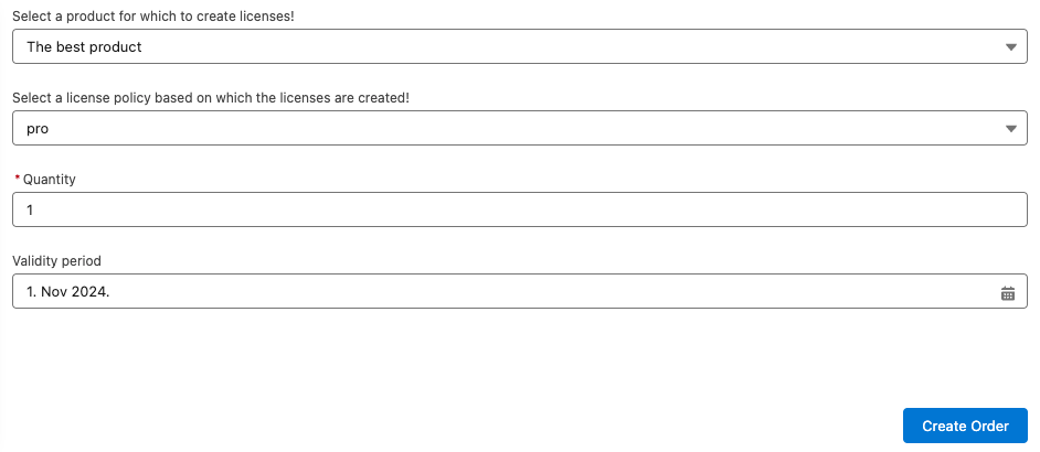 If we have all our settings picked out, we can click on the "Create Order" button and after a small loading period (depending on the quantity of the licenses), we can see all of our licenses that got created.