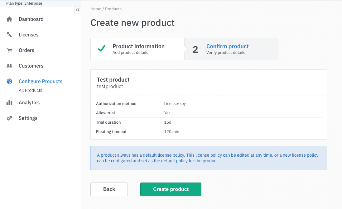 Each license will include the features defined in the default license policy of the product for which the license was created.