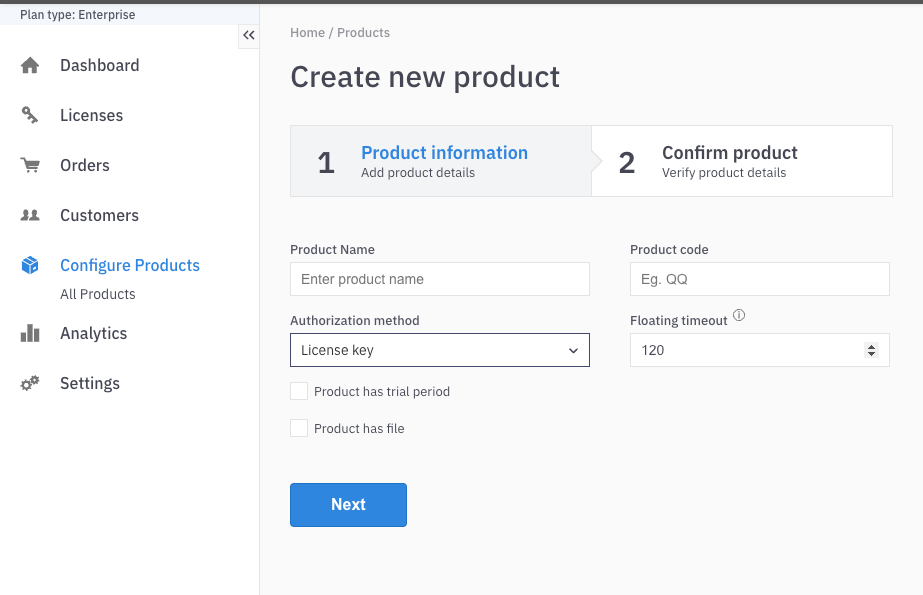 There are currently two ways how you can create licenses keys which will be then used for licensing your products.