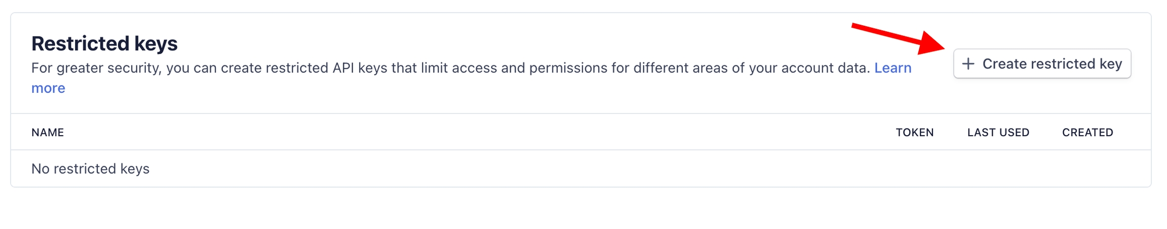 To enable this create restricted API key in your Stripe dashboard. Go to Developer -> API keys and click on the Create restricted key button.