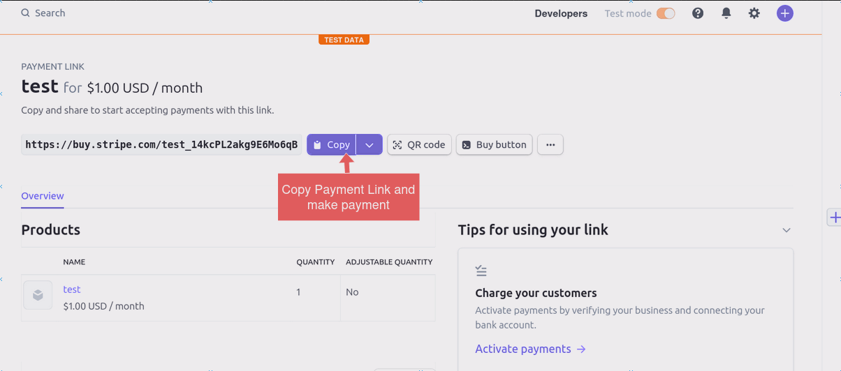 Once the page for payment link creation opens, firstly select the one-time product price for which you want to create the link