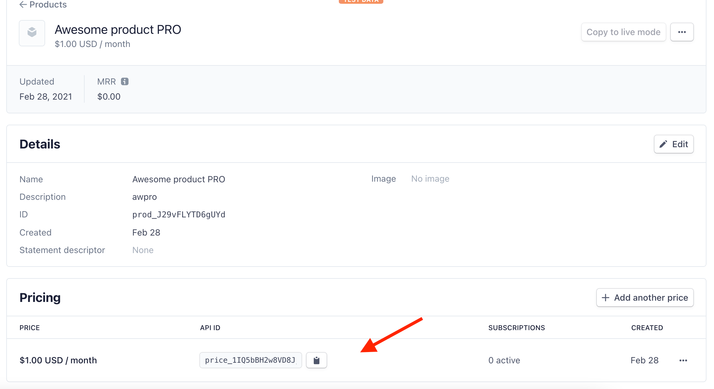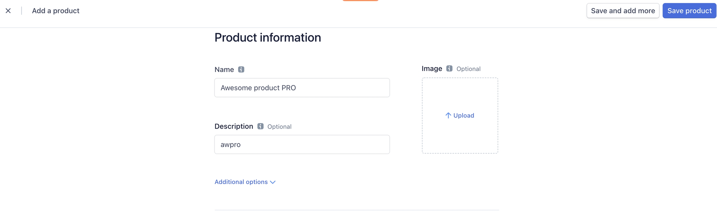 Click on Save product button in the top right corner of the screen to finish creating a product in Stripe.