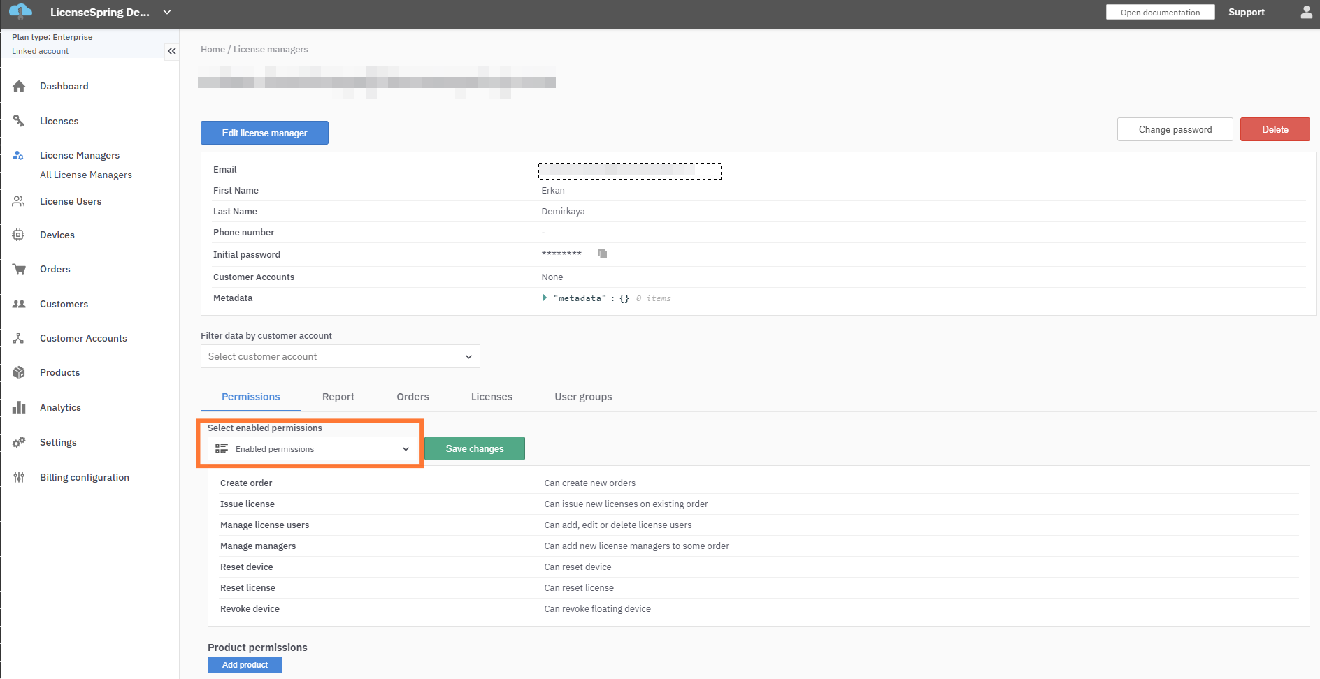 Setting/Modifying Permissions for a License Manager