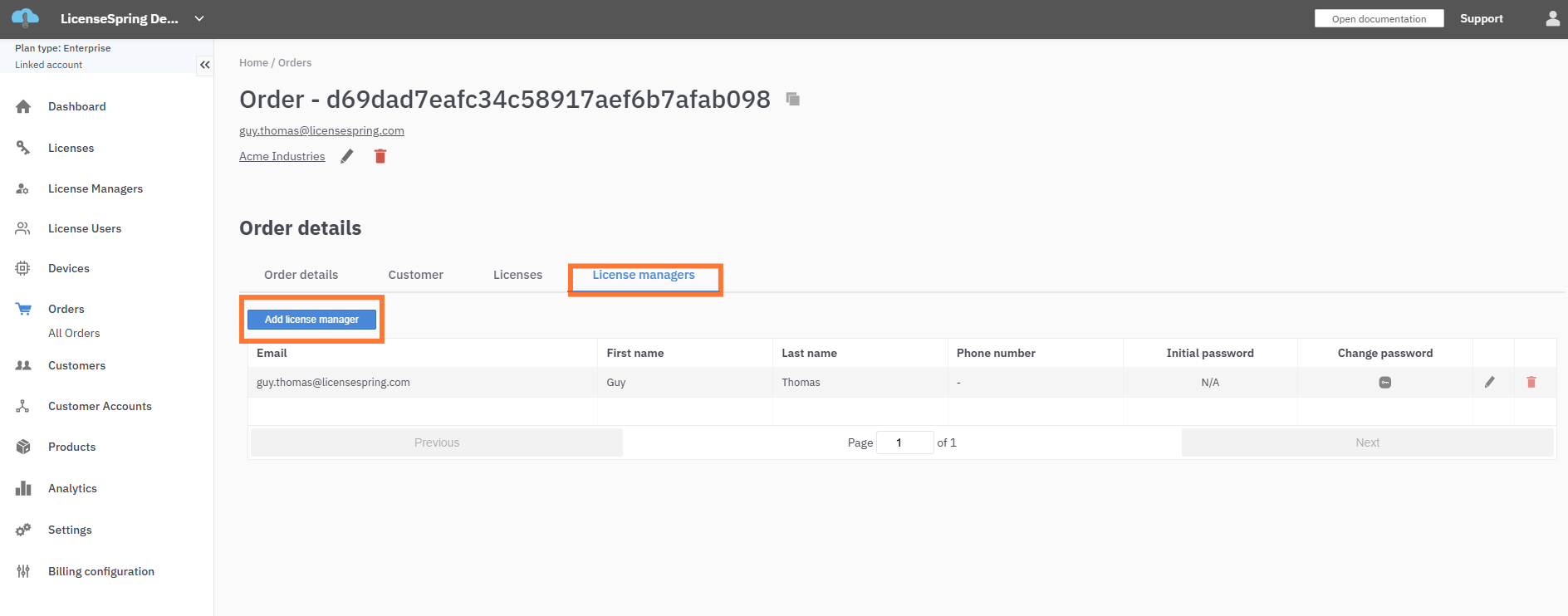 Add a License Manager to an Existing Order