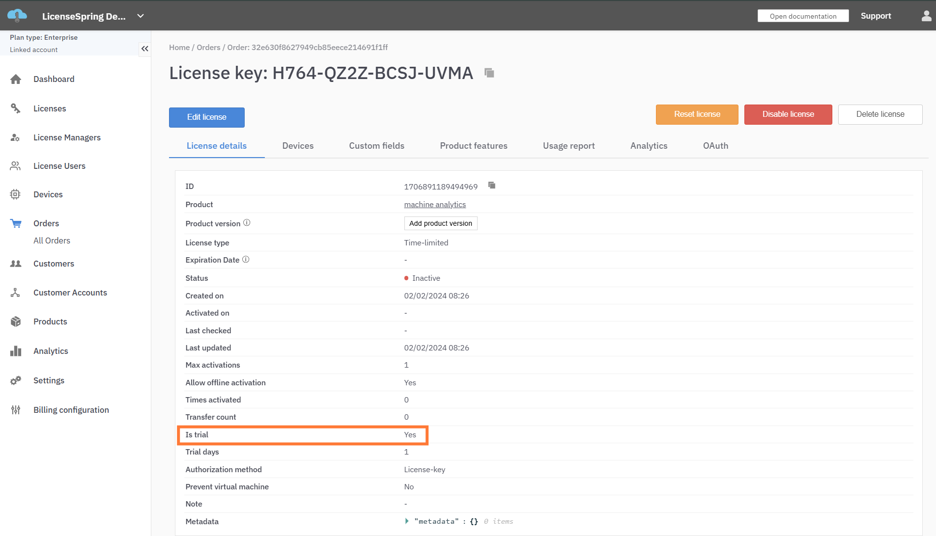 is_trialfield fromTruetoFalse, you can upgrade a license.Since any license type can also be a trial license, you might notice that a perpetual or a consumption license can also have an expiry date.