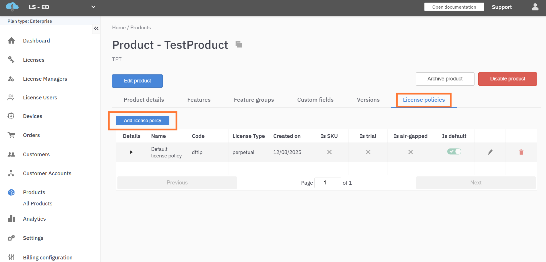 Every product has at least 1 license policy, and there must be at least 1 default license policy.