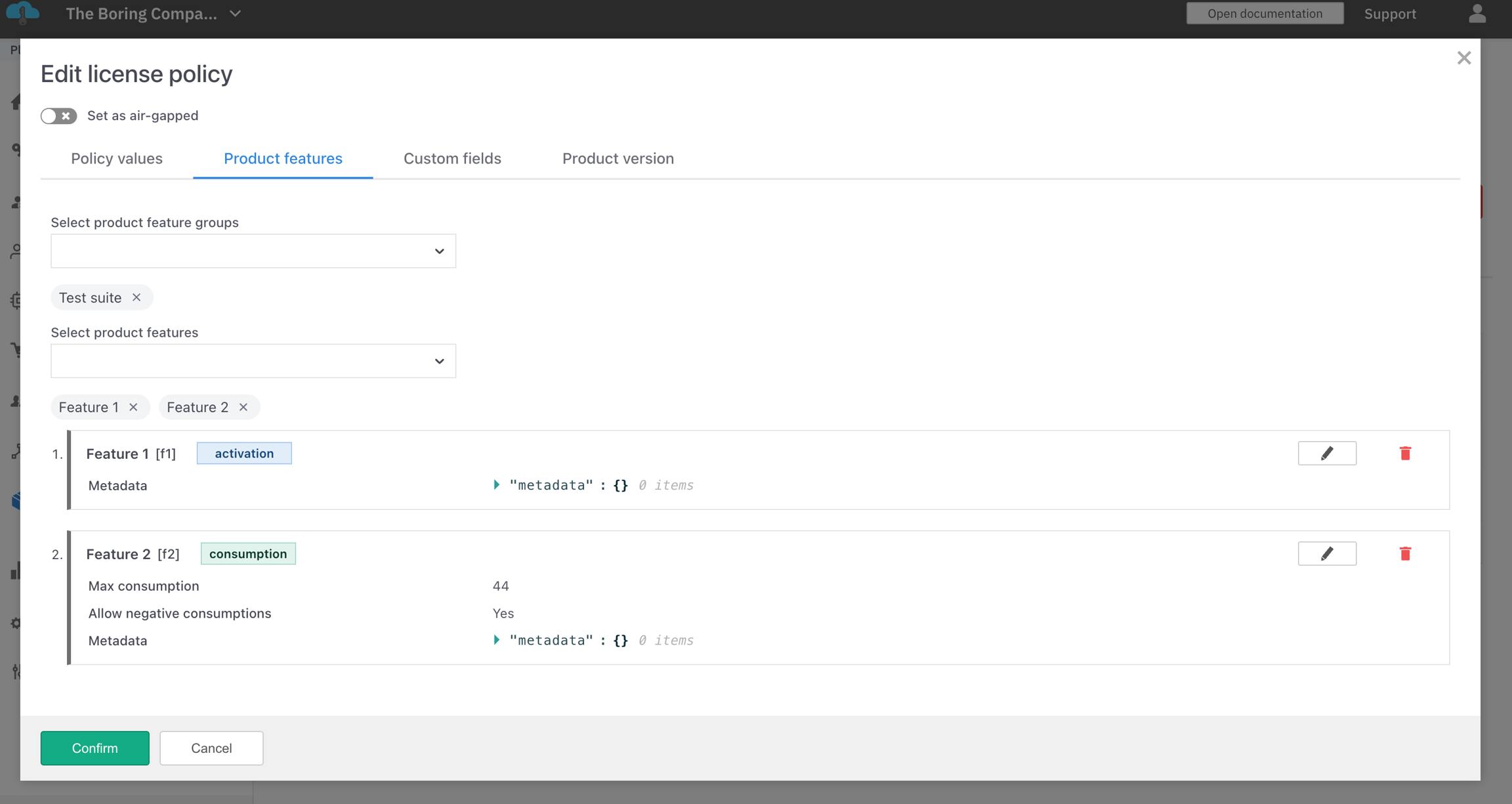 Feature groups can be applied to a license policy or used directly when creating order.