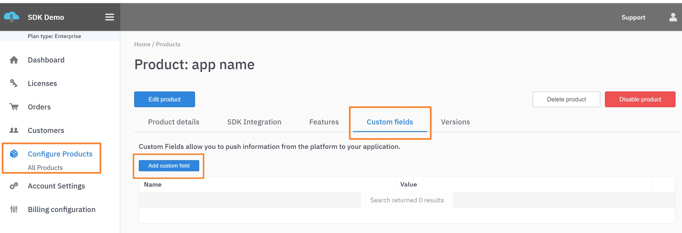 Additionally, renaming a product becomes hassle-free – by creating a custom field for the product name and updating it on the LicenseSpring platform.