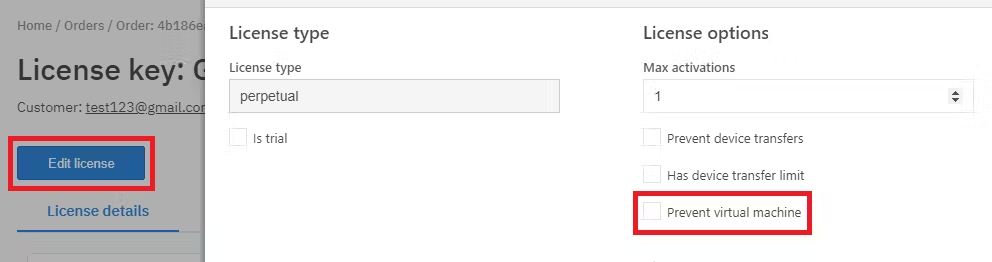 When this feature is checked off, any actions involving our license will result in an error/exception, making the license unusable on a VM.