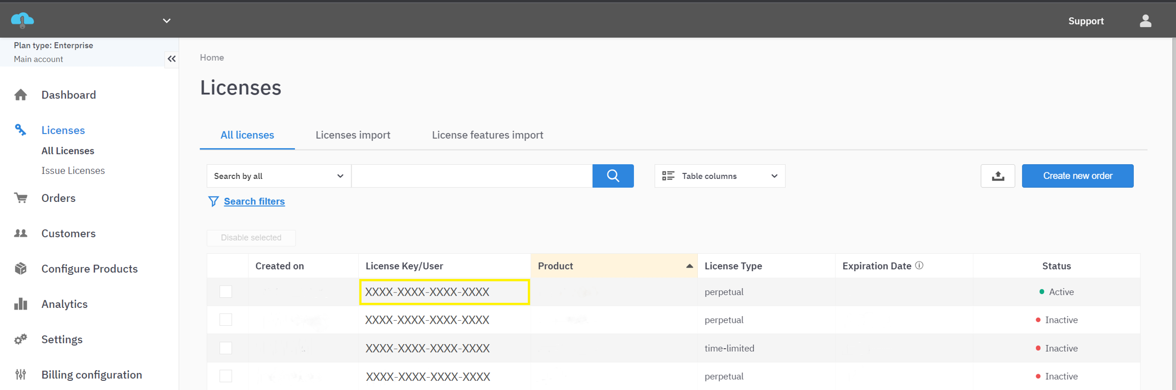 Note that an active license does not necessarily mean a license is valid. A valid license means the license is active, enabled, and not expired. An active license means that the license is bound to a device, but may also be disabled or expired.