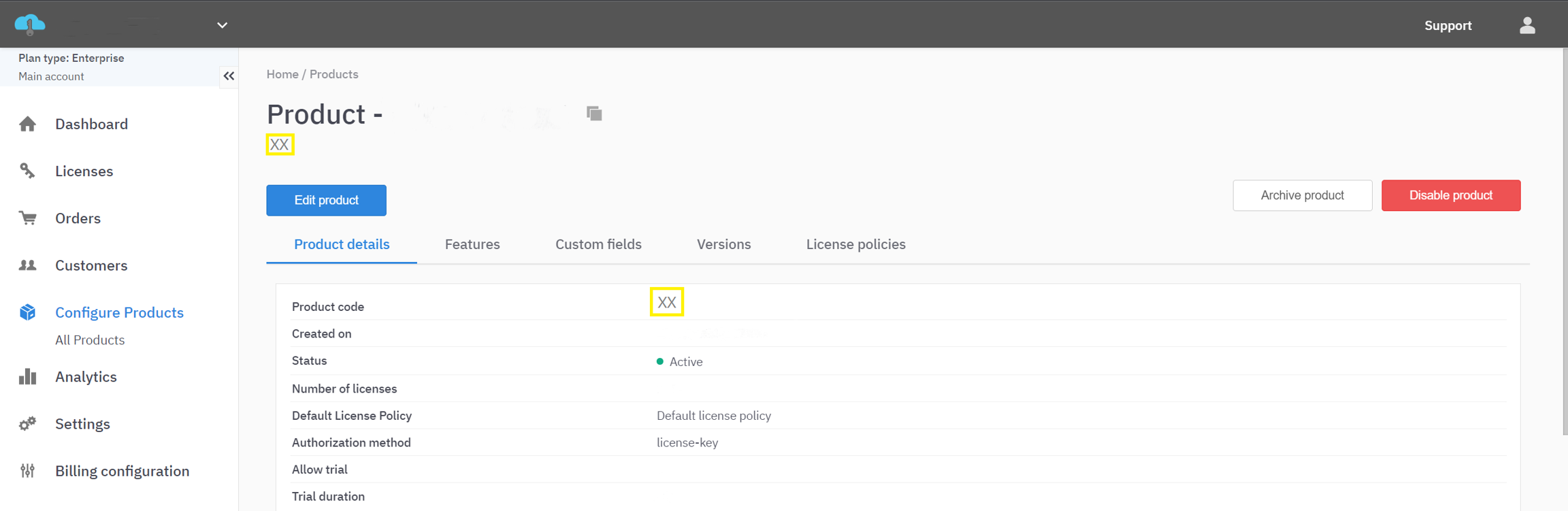 License does not belong to configured product