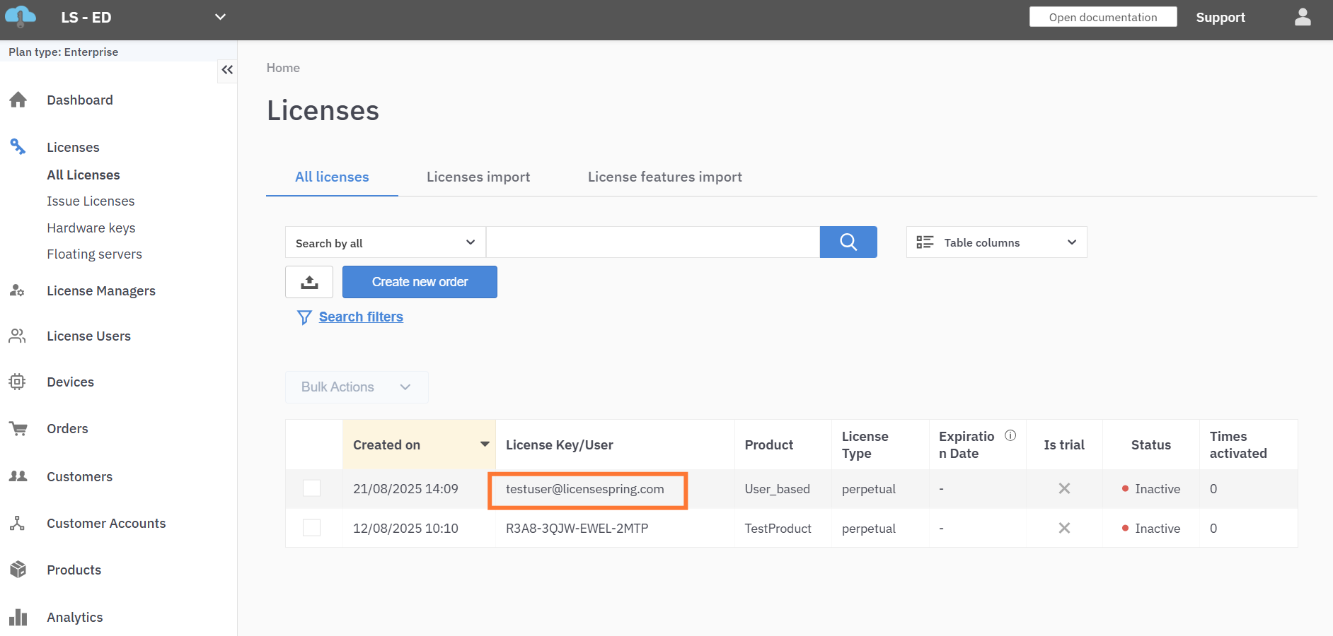This guide walks you through creating a user-based product, issuing licenses, and assigning users in LicenseSpring.