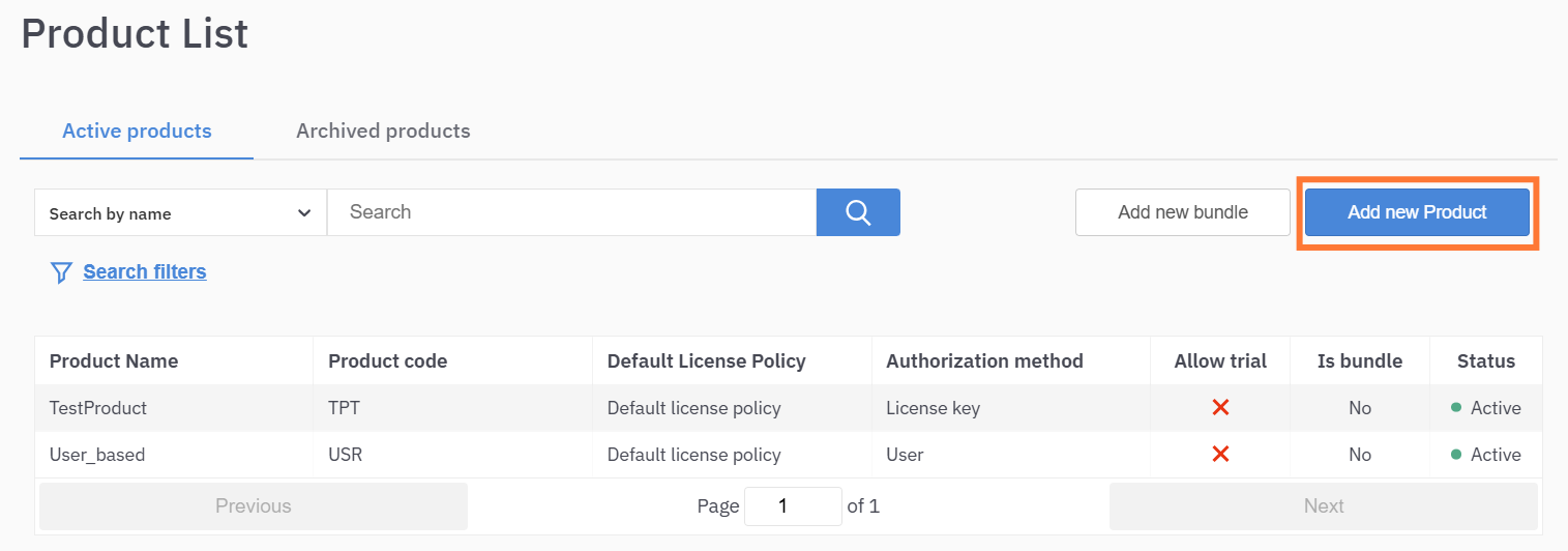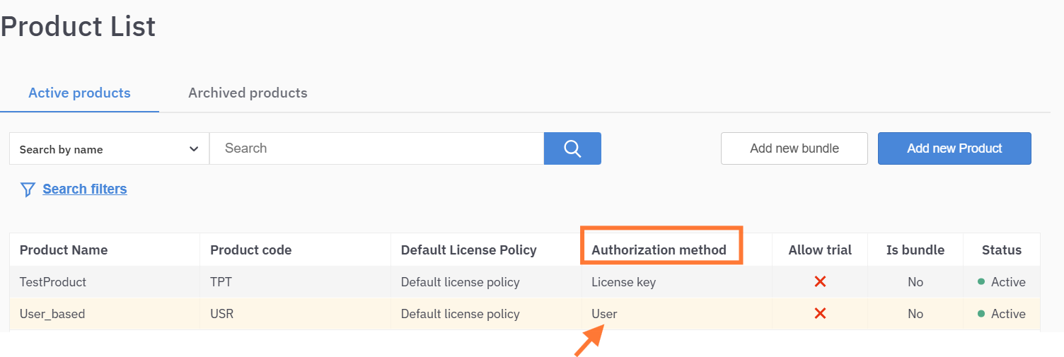 Your product will now appear in the list with Authorization Method: USER, indicating it’s a user-based product.